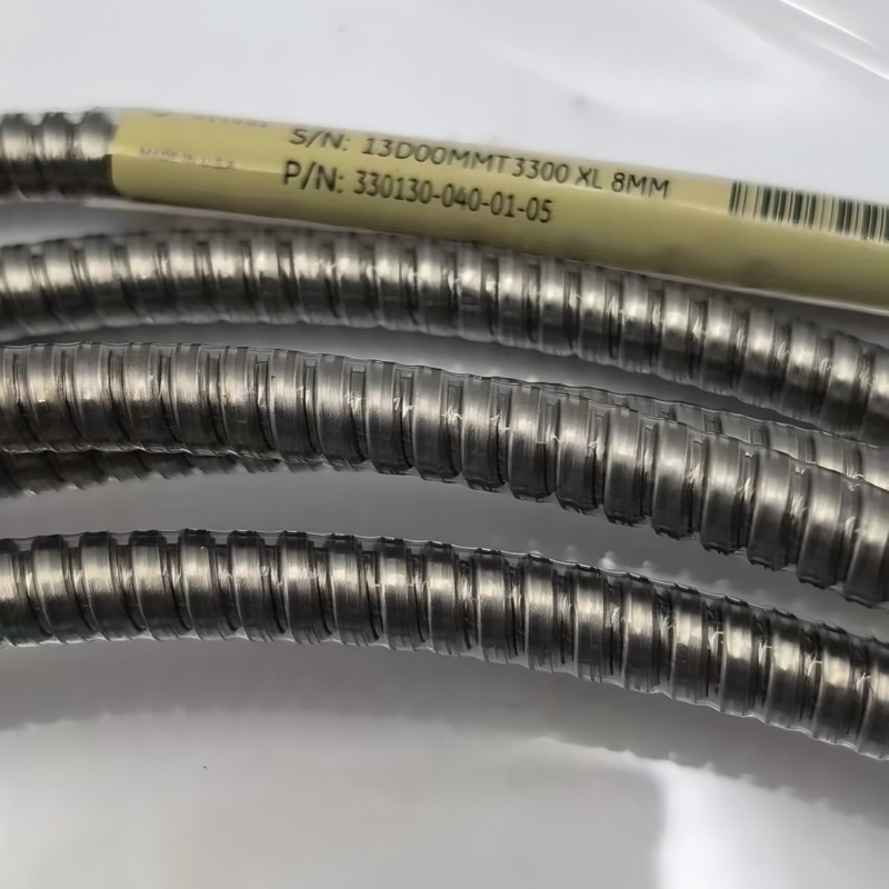 330130-040-01-05 is a high-performance Bently Nevada 3300 XL series extension cable with a total length of 4.0 meters (13.1 feet). This model integrates two core features: stainless steel armor for superior mechanical protection and CSA, ATEX, and IECEx hazardous area approvals for safe use in explosive atmospheres, but does not include connector protectors.
