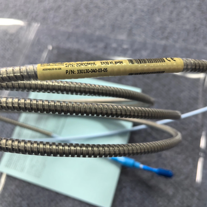 330130-040-03-05 is a Bently Nevada 3300 XL series premier protection extension cable with a total length of 4.0 meters (13.1 feet). This model integrates three core features: stainless steel armor for superior mechanical protection, pre-installed connector protectors for reliable environmental sealing, and CSA, ATEX, and IECEx hazardous area approvals for safe use in explosive atmospheres.