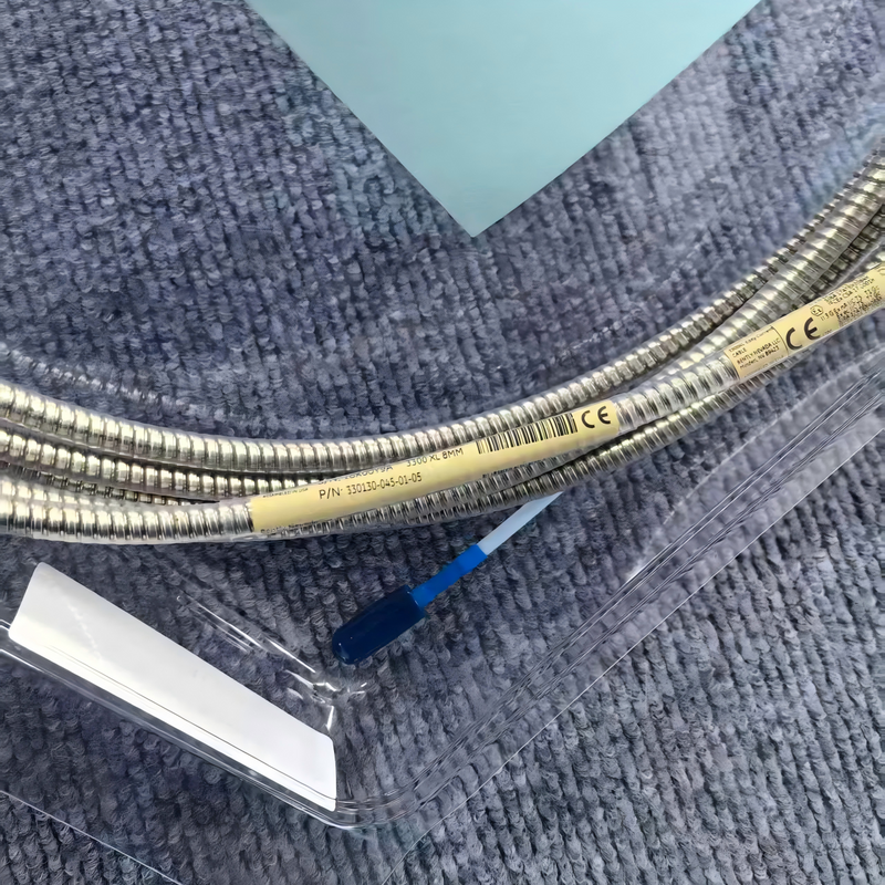 Total Length Matching: Probe length + extension cable length = Proximitor Sensor total system length (5 m or 9 m). Verify your probe length: if using a 0.5 m hazardous area approved probe, select this model (4.5 m); if using a 1.0 m hazardous area approved probe, select a 4.0 m armored hazardous area extension cable (e.g., 330130-040-01-05).