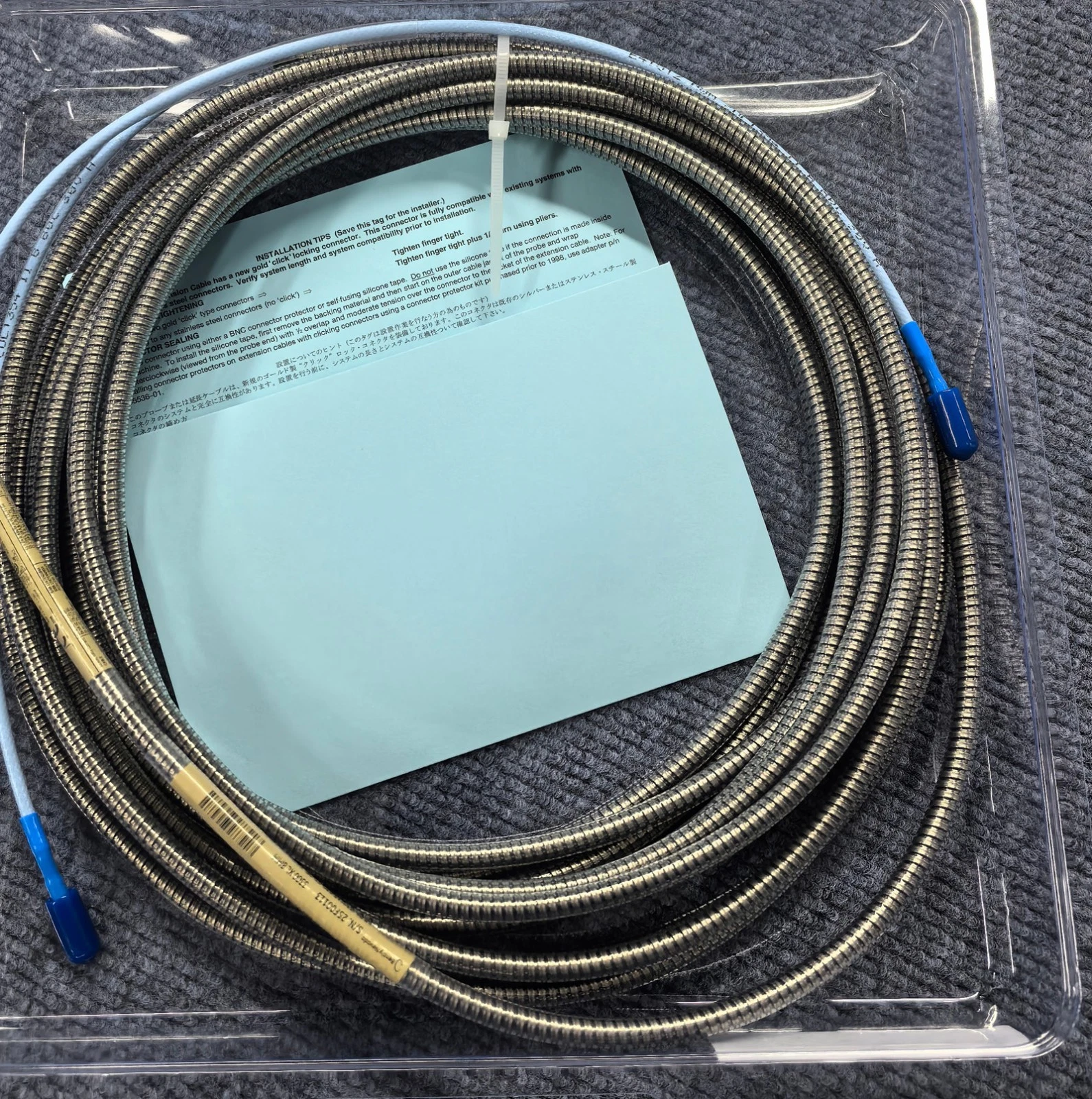 Weight: Armored cable weighs approximately 103 g/m (standard cable is 34 g/m). For long-distance installations, consider the additional tensile load on connectors and probes.