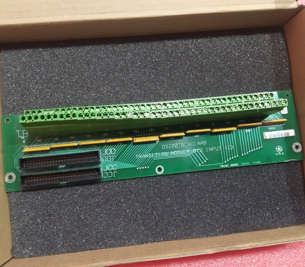 The DS200TBCAG1A (Termination Module RTD Inputs) is a core terminal module within General Electric's (GE) SPEEDTRONIC Mark V LM Turbine Control System, specifically designed for interfacing with Resistance Temperature Detector (RTD) signals. As a critical endpoint interface in the Mark V LM's analog input/output (I/O) architecture, the DS200TBCAG1A module acts as the "sensory nerve ending" for temperature perception in the gas turbine's condition monitoring and protection system. Its primary responsibility is to faithfully introduce the physical signals from RTD temperature sensors—strategically located across key components of the gas turbine and its auxiliary systems (such as bearings, gearboxes, lube oil, cooling water, and inlet/exhaust ducts)—into the controller's data processing core. It provides the most fundamental and reliable data source for temperature protection, efficiency optimization, and predictive maintenance of the unit.