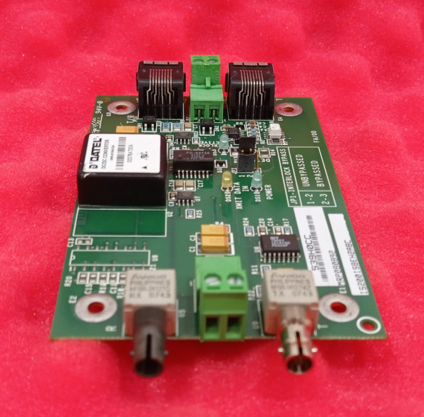 The IS200ISBEH2A board plays a critical role in GE control systems as a communication relay and extender. Through its bypass relay, it achieves flexible signal routing: when the board is powered normally and the interlock is closed, it connects the transmit signals from the full duplex input (P1A) to the fiber optic transmit output (P2), and simultaneously connects the signal from the fiber optic receive input (P3) to the full duplex output (P1A). When the board is de-energized, it automatically bypasses the signal from the fiber optic receive input (P3) directly to the fiber optic transmit output (P2), implementing node bypass functionality and ensuring uninterrupted communication on the ISBus.