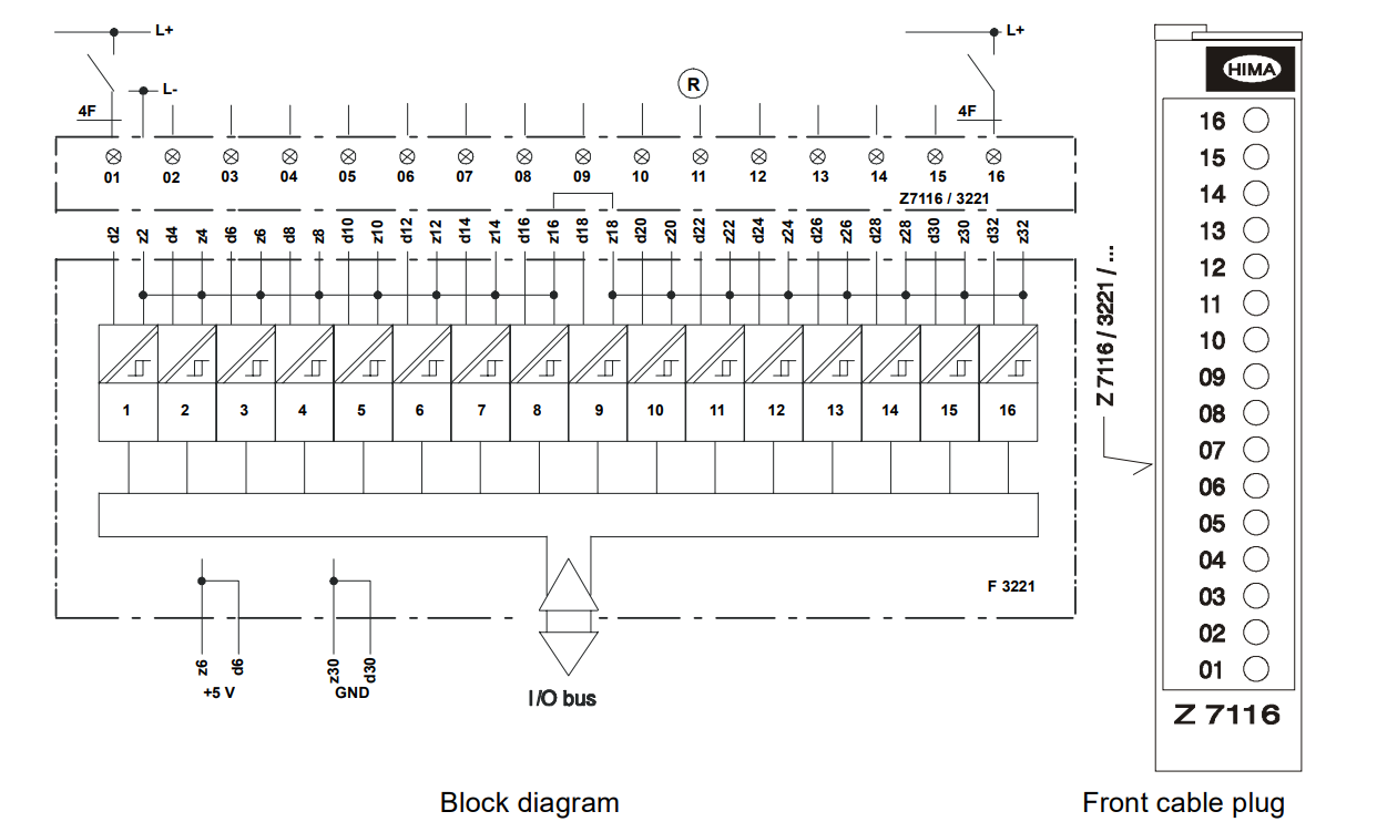 Signal Input: Field signals are connected to the module via the Z 7116/3221 cable plug.